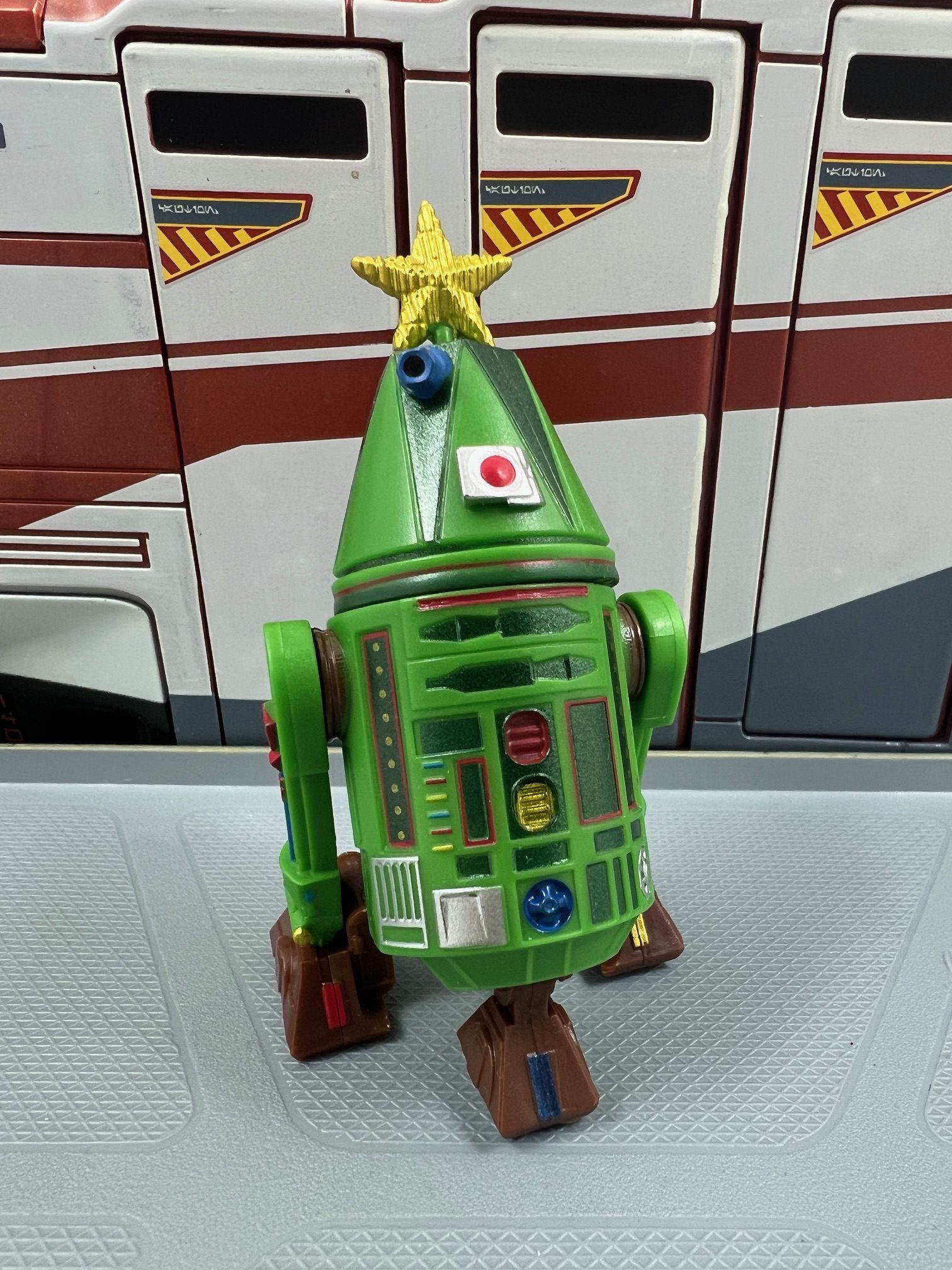 This year’s Christmas-themed droid pays tribute to the Christmas tree in both its name and deco. The name is departure from the typical H for holiday followed by the year of release. This is the first time a droid star accessory has been released.