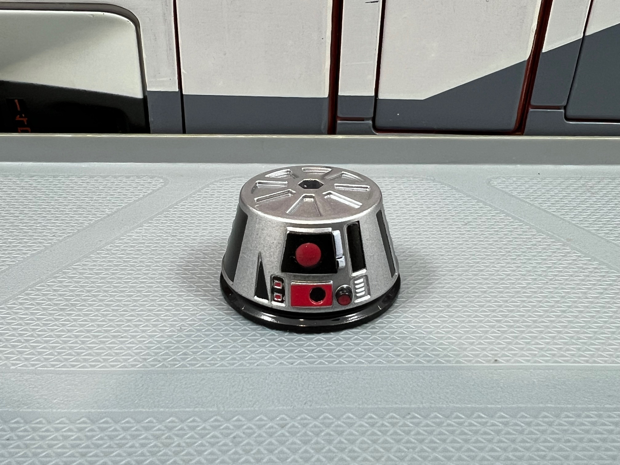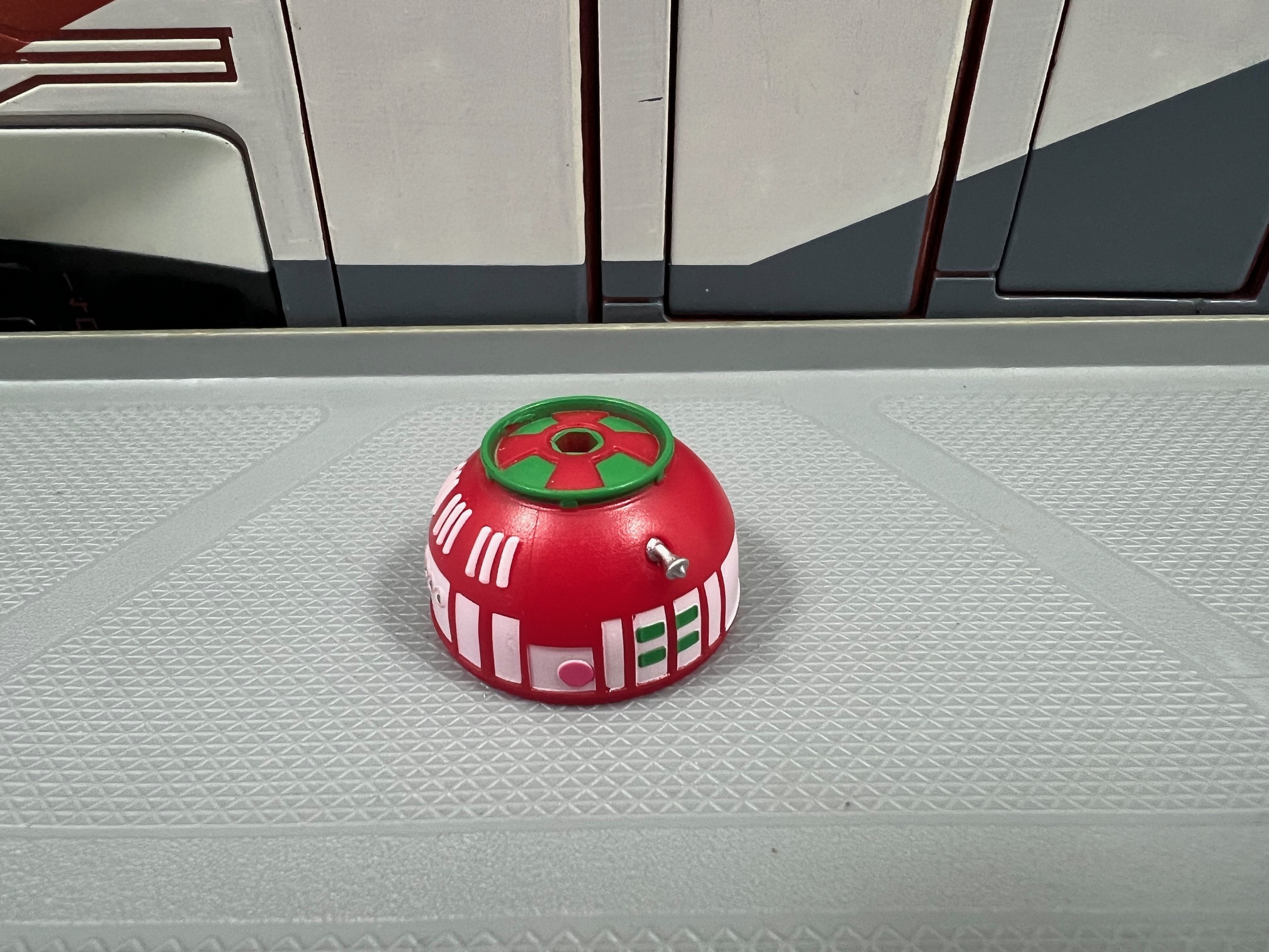 This Astromech hat debuted in November just after the release of R2-H15 (found below in the Exclusives section) which also includes a Santa hat although the two hats are distinctly different. This hat is brighter red with a matte finish whereas R2-H15’s is darker red with a shimmering coating.