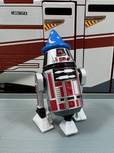 This set includes a new version of the black Mickey Ears hat that includes a hole in the top to accommodate the R2-MK’s upper holoprojector and has his name “embroidered” on the back.